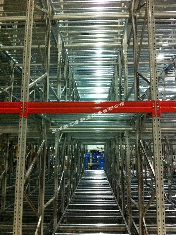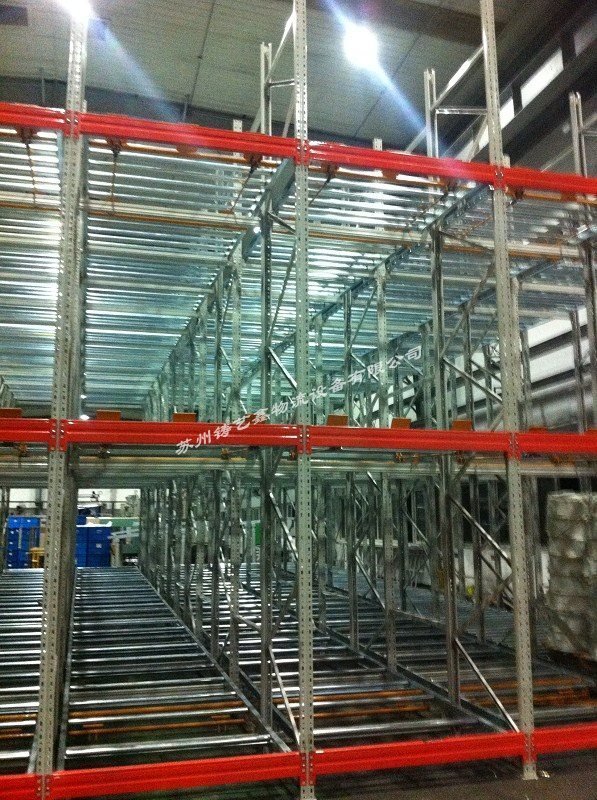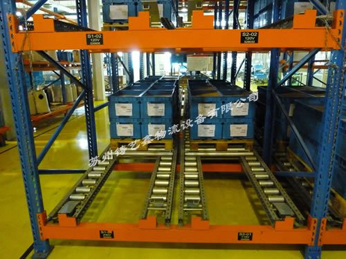 在貨架(jià)的組與組之間沒有作(zuò)業通道,從而增加了60%的空間利用率,提高了(le)倉儲的容積率(lǜ);托盤(pán)操作遵循先進先出(chū)的原則;自動儲存回轉;儲存和揀選兩個動作的分開大大提高輸出量,由於是(shì)自(zì)重力使貨物滑動,而且沒有操作通道,所以減少了運輸(shū)路線和叉車的數量(liàng)。