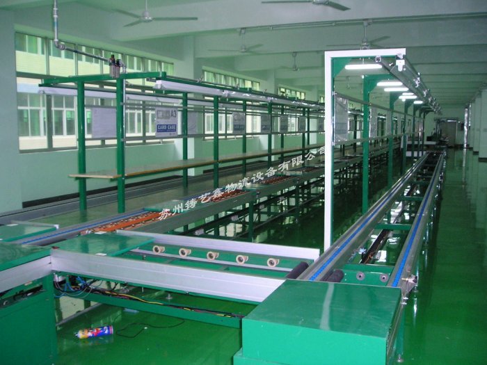 流水線又稱為裝配線,一種工業(yè)上的生產方式,指每一個生產(chǎn)單位隻專注處理某一個片段的工作,以提高工作(zuò)效(xiào)率及產量;按照流(liú)水線的輸送方式大體可以分為:皮帶流水裝配線、板鏈(liàn)線、倍速鏈、插件線、網帶線、懸掛線及滾筒流水線這七類流水線。一般包括牽引件、承載構件、驅動(dòng)裝置、漲緊裝置(zhì)、改向裝置和支承件等組成。流水線可擴展性高,可按需求設計輸送量,輸(shū)送速度(dù),裝配(pèi)工位,輔助部件(包括(kuò)快速接頭、風扇,電燈,插(chā)座(zuò),工藝看板,置物台,24V電(diàn)源(yuán),風批等,因此廣受企業歡迎;流水線是人和機器的有效組合,充(chōng)分體現設備的靈活性,它將輸送係統、隨行夾(jiá)具和(hé)在線專機、檢測設備(bèi)有機的組合,以滿(mǎn)足(zú)多品種產品的(de)輸送要求。輸送線的傳輸方式有同步傳輸的(de)/(強製式),也(yě)可以(yǐ)是非同步傳輸/(柔性(xìng)式),根據配置的選擇,可以實現裝配和輸送的要求(qiú)。輸送線在企業的批量生產中不可或缺。 流水線的(de)優(yōu)勢: 1.整合(hé)生產工藝,可在流水線上布置(zhì)多種工位,滿足生產需求; 2.可擴展性高,可根據工廠需求,設計符合產品生產需求的(de)流水(shuǐ)線; 3.節約工廠生產成本程度上(shàng)節約生產工人數量,實現一定程度的自動化生產,前期投入不大,回報 率高。