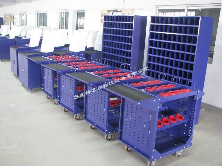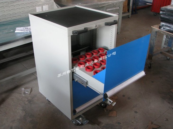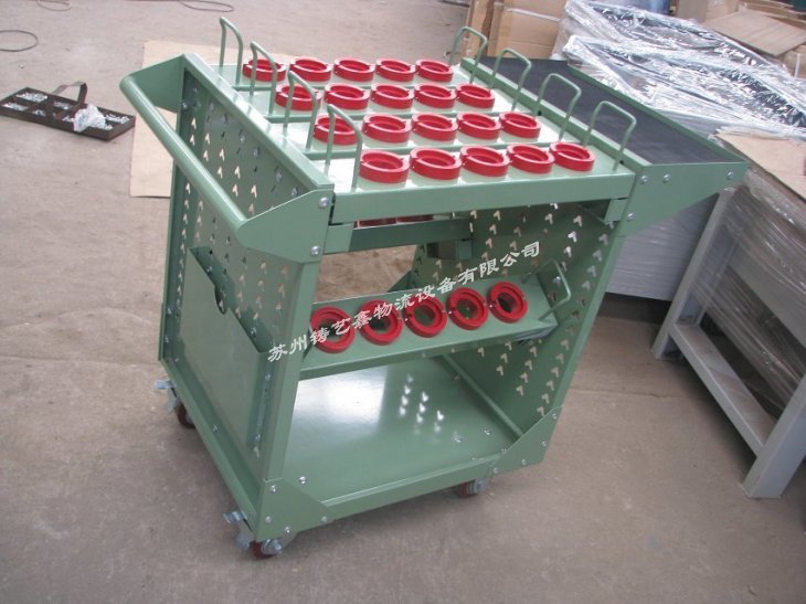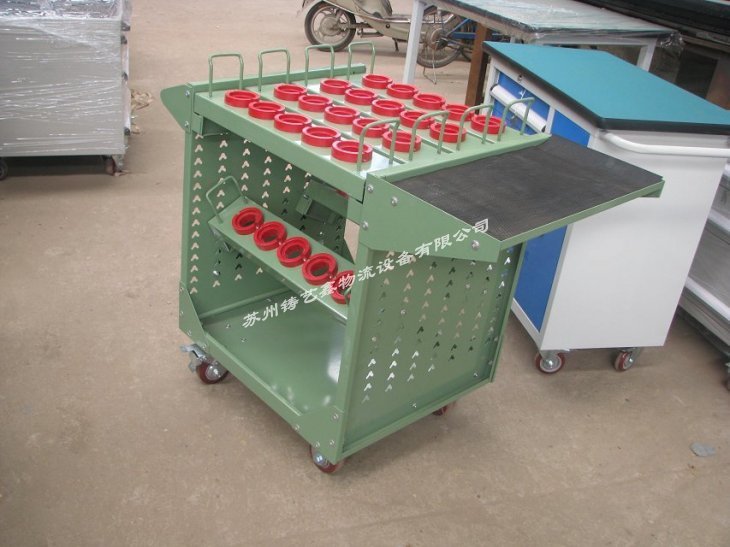 刀具(jù)車是(shì)存放、搬運刀具的裝備,現代貨架(jià)廠生產的HY-HSK係列刀(dāo)具車成多邊成型的前後側板上有模數化的(de)人字孔(kǒng),可(kě)將刀具座掛板按(àn)水平或(huò)傾斜放置,方(fāng)便多種刀具的存放。 高強度腳輪,車前為兩(liǎng)個定向輪,車(chē)後為兩個萬向帶(dài) 刹車輪,推(tuī)行平穩,方向性好,刹車固定後不會滑(huá)動。 結構特點: 1.配有標簽,明確分類. 2.快速拿(ná)出工(gōng)具,節約查找(zhǎo)時間. 3. 配有輪子,便於移動. 4.抽屜可拉出99%