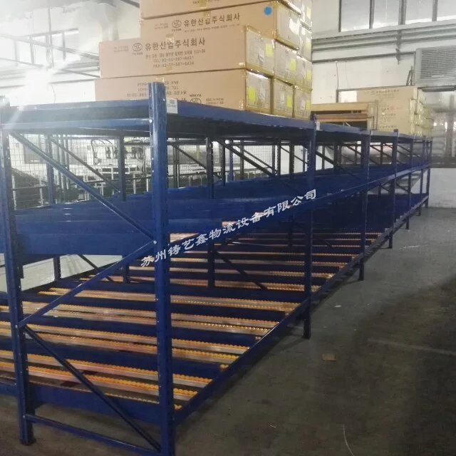流利貨架等同(tóng)於流利式貨(huò)架,產(chǎn)品常由中型橫梁式貨架(jià)演變而成,通過滾道將貨物從配貨端輸送到取貨端,貨物借助重力自(zì)動下滑,可實現“先進先出”作業,使用成本低,存儲速度快、密度(dù)大。通常使用在企業的精益生產流水作業。 流利貨架的特點(diǎn): 1、采用滾輪式(shì)鋁合金等流(liú)力條,利用貨物自重實現貨的(de)先進先(xiān)出。 2、存取方便,適合於(yú)裝配線兩側,配送中心(xīn)等場所。 3、適用於大批量(liàng)同類(lèi)貨物的存(cún)儲,空間利用率較高,由(yóu)其適合汽配工廠使用。 4、可配以電子標(biāo)簽,實現貨物的信息化管理。
